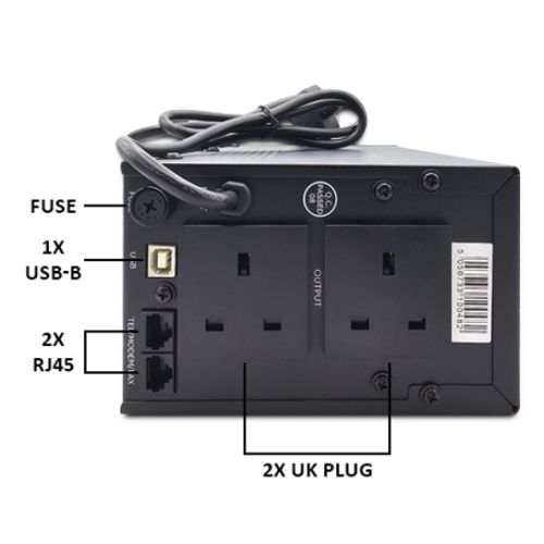 Armour 650VA UPS, 390W, LED Indicators, 2x UK Plug, 2x RJ45, USB