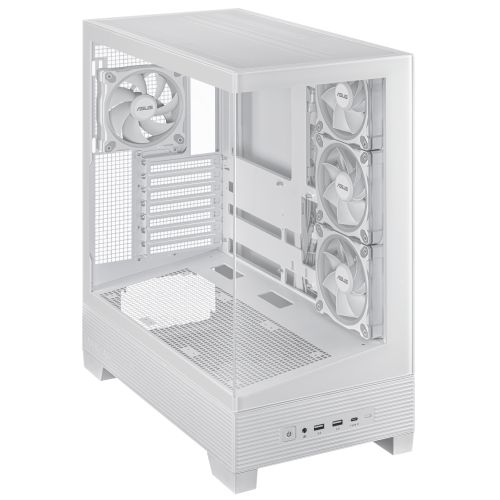 Asus A31 Plus ARGB Gaming Case w/ Front & Side Glass Windows, ATX, 4x ARGB Fans, USB-C, Angled Base, Asus BTF Compatible, White