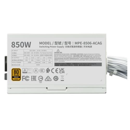Cooler Master 850W MWE Gold V3 ATX 3.1 PSU, Fully Wired, HDB Bearing Fan, 80+ Gold, White