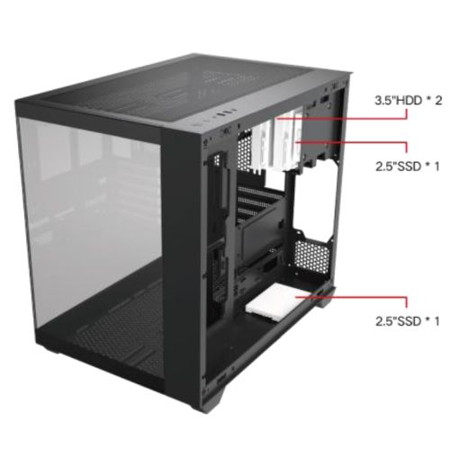 Cooler Master CD600 Gaming Case w/ Glass Side & Front, ATX, 6x ARGB Fans, USB-C, Asus BTF Compatible, Black