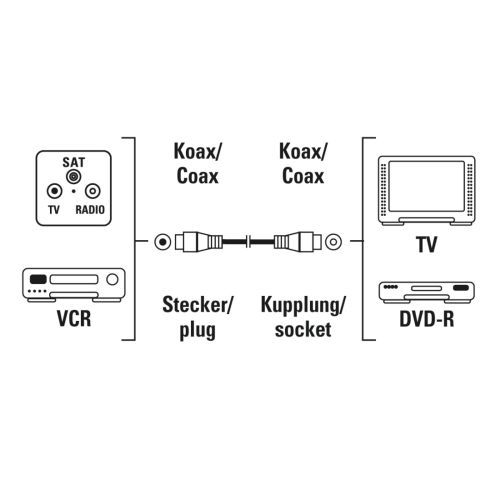 Hama Antenna Cable, Coax Male to Coax Female, 75dB, 10 Metre, White