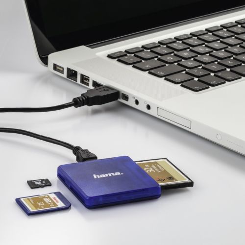 Hama External USB 2.0 Multi-Card Reader, SD/microSD/CF, Blue, USB Powered