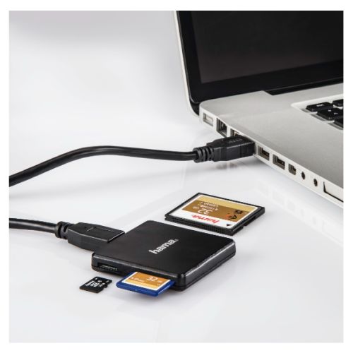 Hama External USB 3.0 Multi-Card Reader, SD/microSD/CF, Black, USB Powered