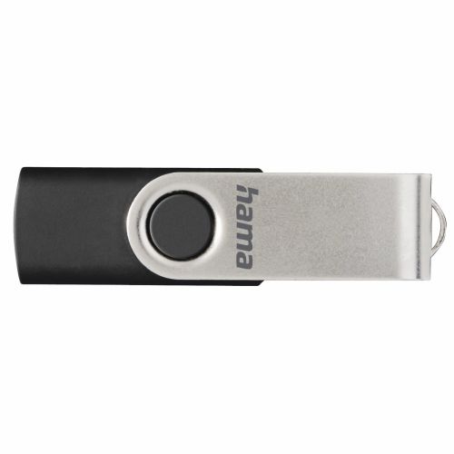 Hama Rotate 64GB USB 2.0 Memory Pen, Rotating Cap, Keyring, Black/Silver