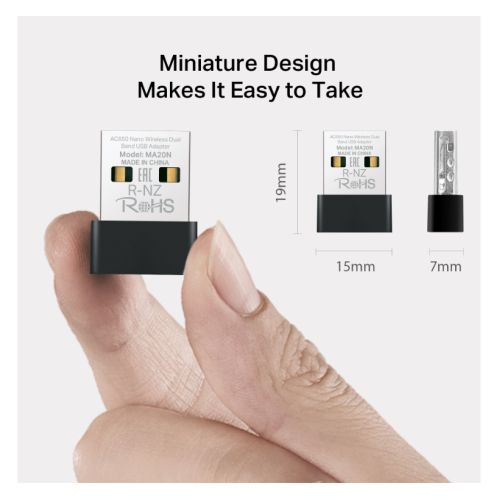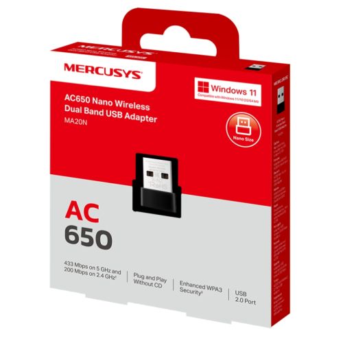 Mercusys (MA20N) AC650 Nano Wireless Dual Band USB Adapter, WPA3 Security