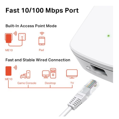 Mercusys (ME10) 300Mbps Wall-Plug Wifi Range Extender, 1x 10/100 LAN, AP Mode