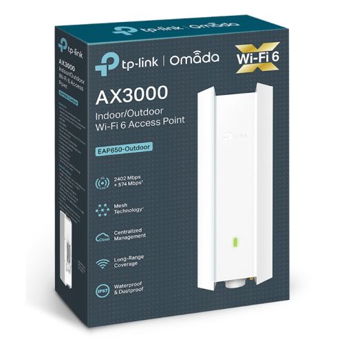 TP-LINK (EAP650-OUTDOOR) Omada AX3000 Indoor/Outdoor Wi-Fi 6 Access Point, Dual Band, OFDMA & MU-MIMO, PoE, Mesh Technology