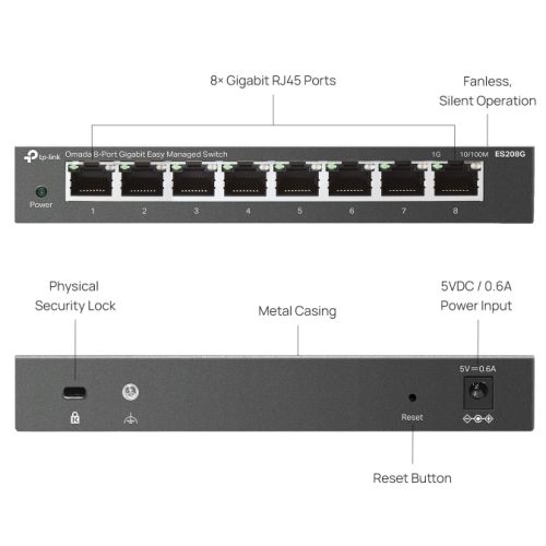TP-LINK (ES208G) Omada 8-Port Gigabit Easy Managed Switch, 8x GB Ports, Metal Casing