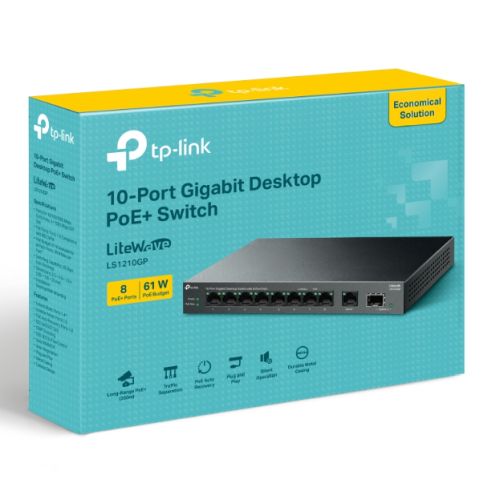 TP-LINK (LS1210GP) 10-Port Gigabit Desktop LiteWave Switch with 8-Port PoE+, GB SFP Port