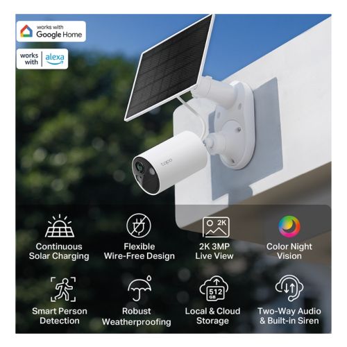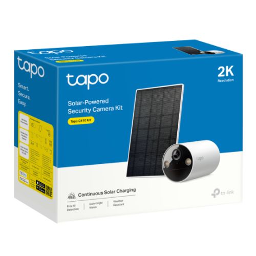 TP-LINK (TAPO C410 KIT) Smart Battery-Powered 2K Outdoor Security Camera & Solar Panel, 6400mAh Battery, Colour Night Vision, AI Detection, Alarms, 2-Way Audio, No Hub Required