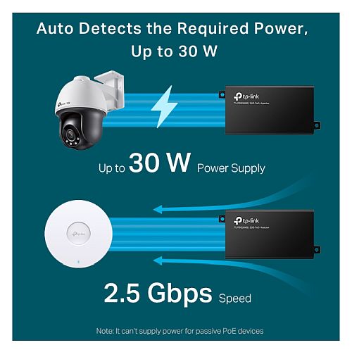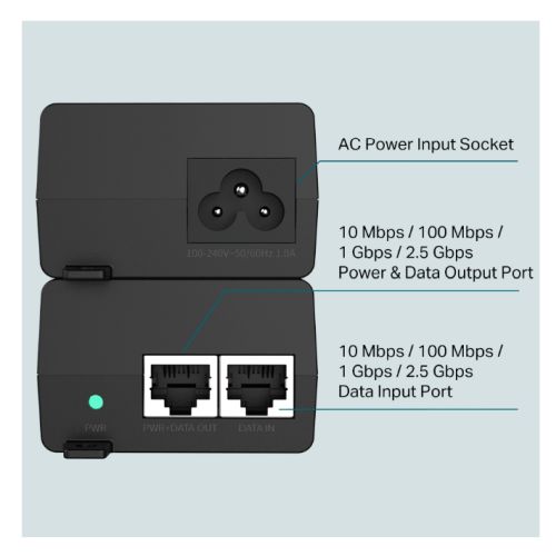 TP-LINK (TL-POE260S) 2.5G PoE+ Injector, 2 x 2.5Gbps Ports