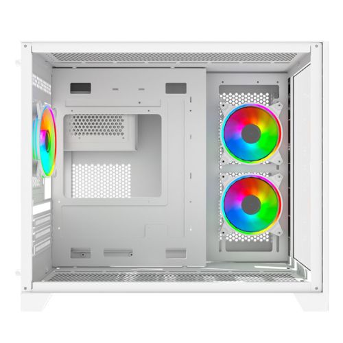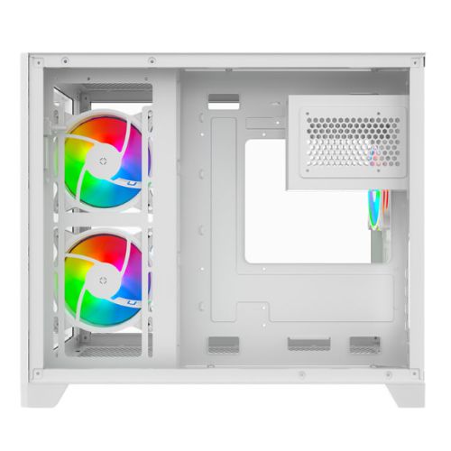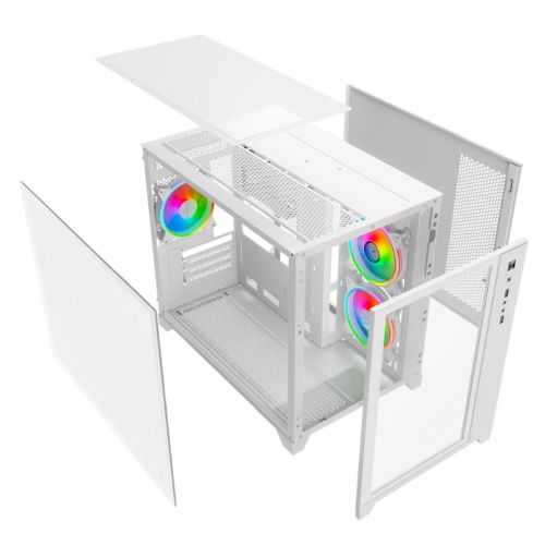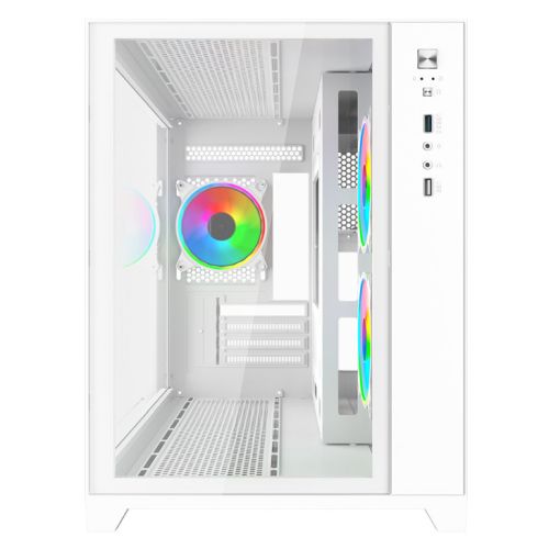Vida Akira V2 White ARGB Gaming Case w/ Glass Front & Side, Micro ATX, 3x ARGB PWM Fans, 6-Port ARGB Fan Hub & Remote Control