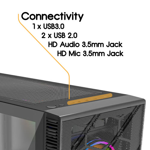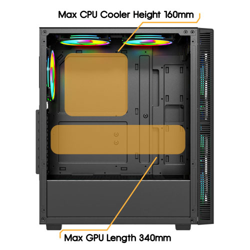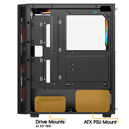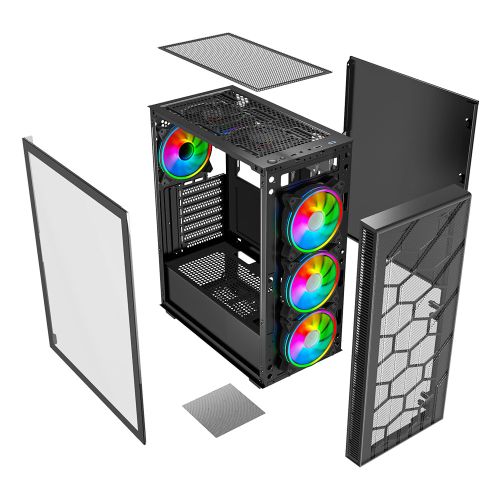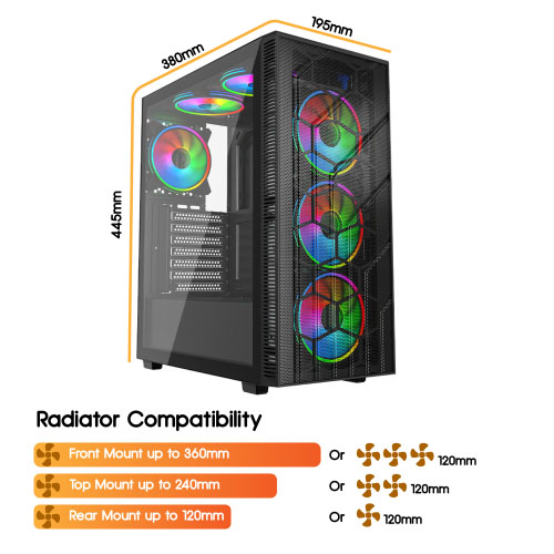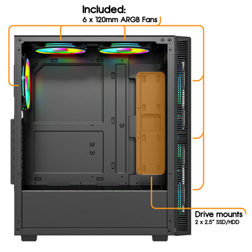 Vida Sirocco V2 Black ARGB Gaming Case w/ Glass Window, ATX, 6x ARGB Fans, Mesh Front