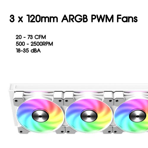 Vida TriFrost 360mm ARGB Liquid CPU Cooler, 3x ARGB PWM Fans, ARGB CPU Block, 300W TDP, White