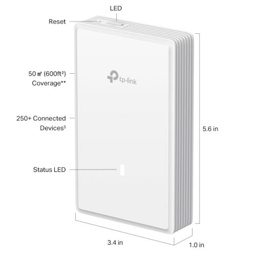 TP-LINK (EAP725-WALL) BE3600 Dual Band Wall Plate Wi-Fi 7 Access Point, PoE, 2.5GB Ports, 160MHz Bandwidth, Omada Mesh, Multi-RUs