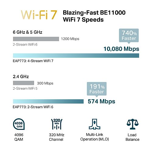 TP-LINK (EAP773) BE9300 Tri-Band Ceiling Mount Wi-Fi 7 Access Point, PoE++, 10GB Port, Omada Mesh, MLO, Multi-RUs