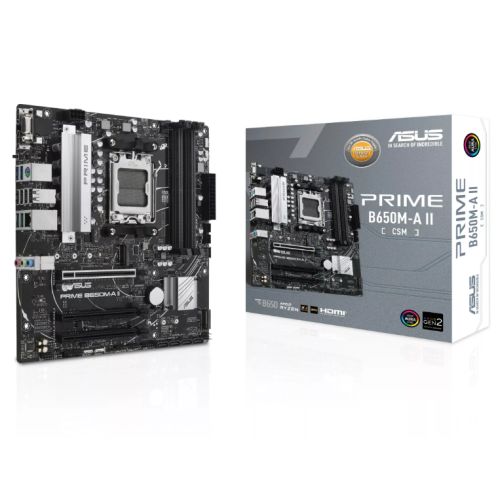 Asus PRIME B650M-A II-CSM - Corporate Stable Model, AMD B650, AM5, Micro ATX, 4 DDR5, VGA, HDMI, DP, 2.5G LAN, 2x M.2