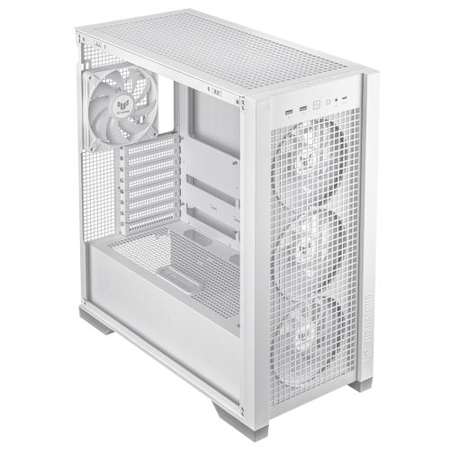Asus TUF Gaming GT302 ARGB Case w/ Glass Window, E-ATX, 4x ARGB Fans, Interchangeable Side Panel, USB-C, Asus BTF Compatible, White