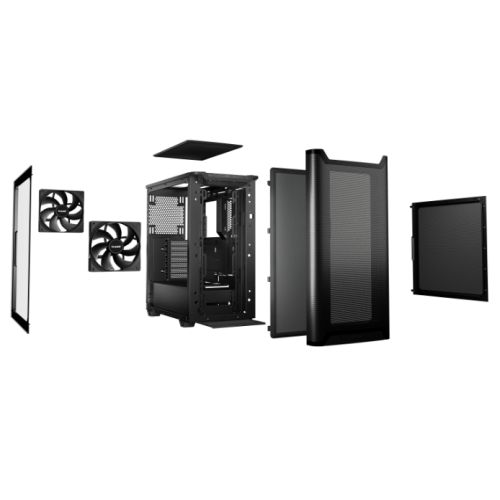 Be Quiet! Pure Base 501 Airflow Window Gaming Case w/ Glass Side, ATX, Compact Design, 2 Pure Wings 3 Fans, High Airflow Front & Top, USB-C, Black