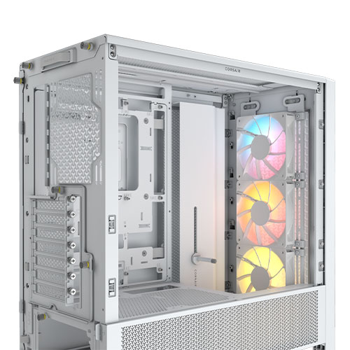 Corsair FRAME 4000D RS ARGB Modular Gaming Case w/ Glass Side, E-ATX, 3x ARGB Fans, InfiniRail Fan Mounting, USB-C, Asus BTF Compatible, White