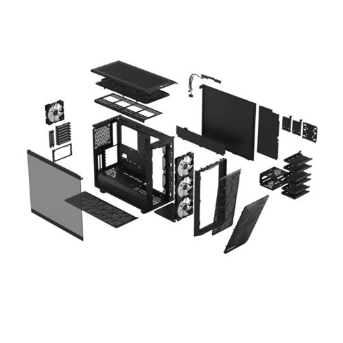 Fractal Design Meshify 2 RGB (Black TG) Gaming Case w/ Light Tint Glass Window, E-ATX, Angular Mesh Front, 4 RGB Fans, Fan Hub, Detachable Front Filter, USB-C