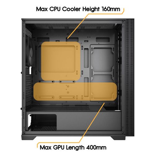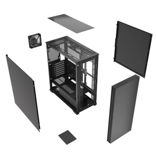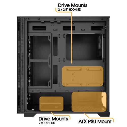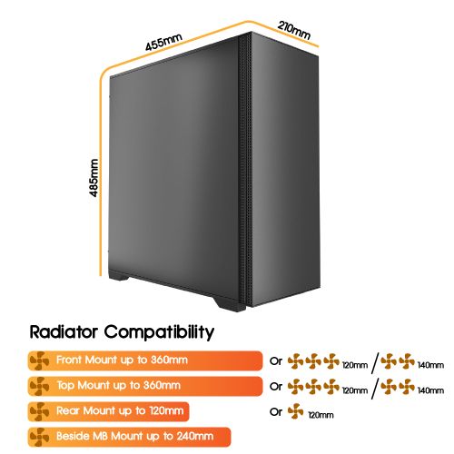 Vida Stealth Silent ATX Case, Matte Finish, Internal Sound Dampening, 1x PWM Fan, Dual 360mm Radiator Support, USB-C, Black