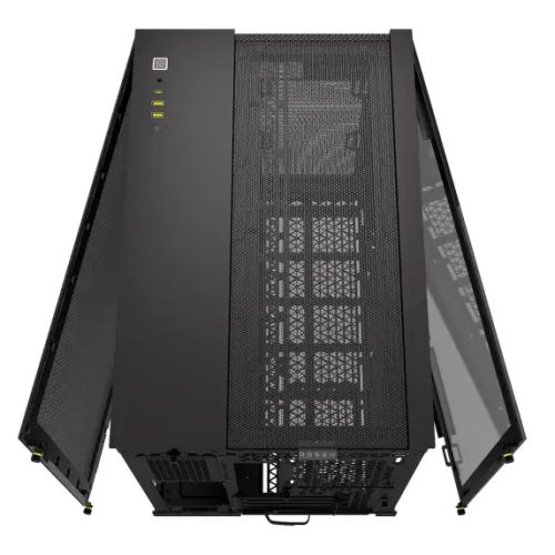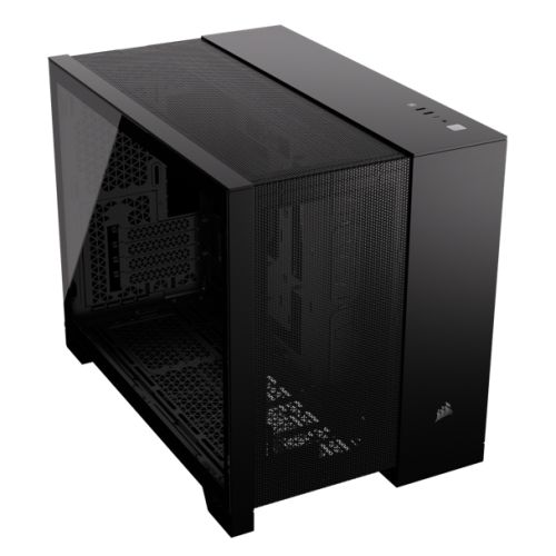 Corsair 2500D Airflow Dual Chamber Gaming Case w/ Glass Window, Micro ATX, Fully Mesh Panelling, USB-C, Asus BTF Compatible, Black