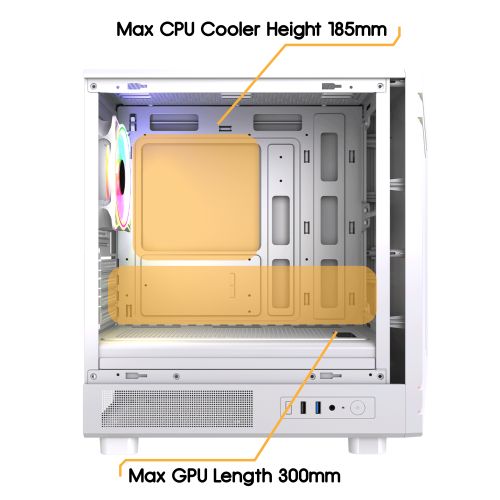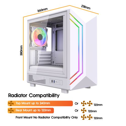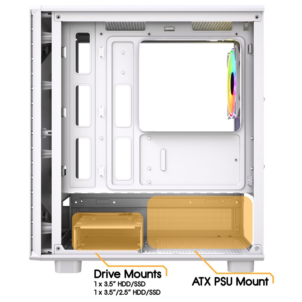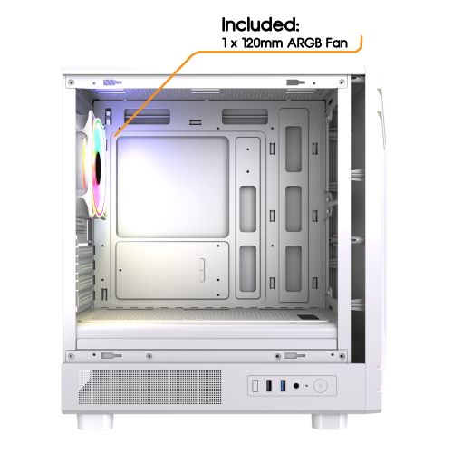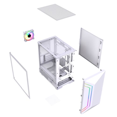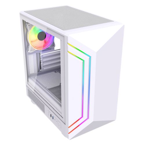 Vida Apollo M White ARGB Gaming Case w/ Glass Window, Micro ATX, Rear ARGB Infinity Fan, Front LED Strips