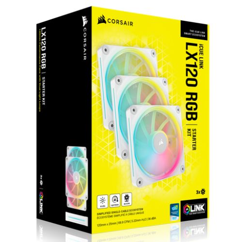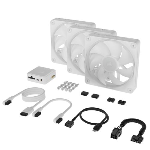Corsair iCUE LINK LX120 120mm PWM RGB Case Fans (3-Pack), 18 RGB LEDs, Magnetic Dome Bearing, 2400 RPM, iCUE LINK Hub Included, White