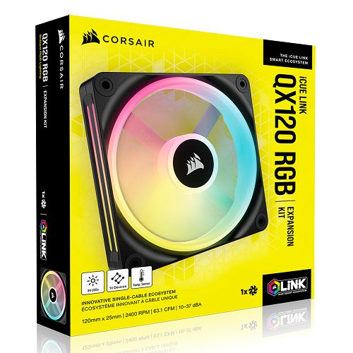 Corsair iCUE LINK QX120 120mm PWM RGB Case Fan, 34 RGB LEDs, Magnetic Dome Bearing, 2400 RPM, Black, Single Fan Expansion Kit