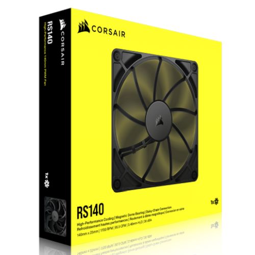 Corsair RS140 PWM 140mm Case Fan, Magnetic Dome Bearing, Daisy-Chain 4-Pin, 1700 RPM, AirGuide Tech, Black
