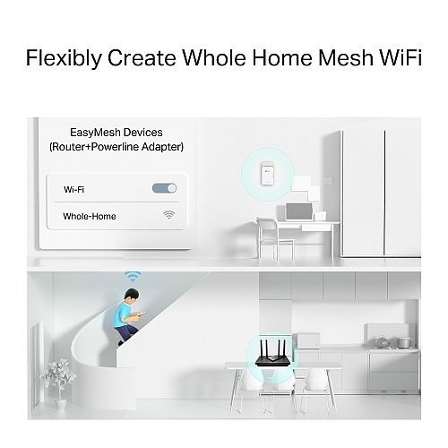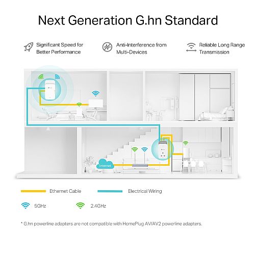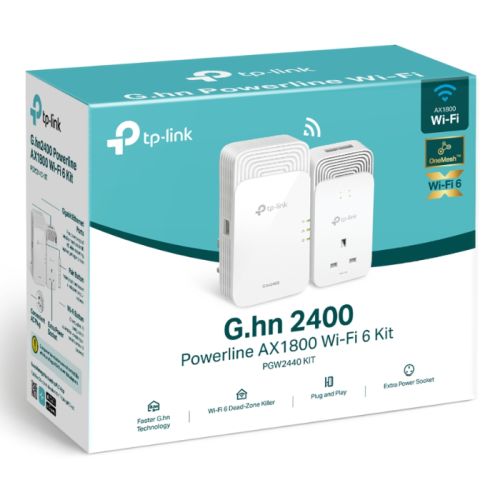 TP-LINK (PGW2440 KIT) G.hn2400 Powerline AX1800 Wi-Fi 6 Adapter Kit, AC Pass Through, GB LAN, EasyMesh-Compatible