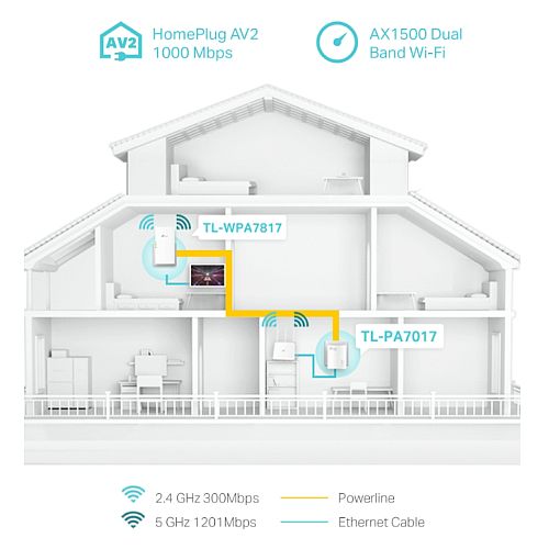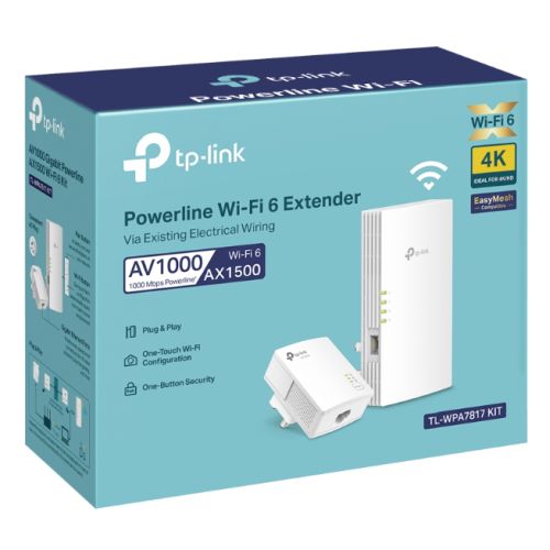 TP-LINK (TL-WPA7817 KIT) AX1500 Wireless Dual Band Powerline Adapter Kit, AV1000, Gigabit, 1-Port, EasyMesh-Compatible