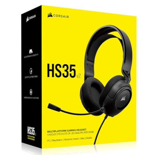 Corsair HS35 v2 Multiplatform Wired Gaming Headset, 3.5mm Jack, Suspended Fabric Headband, 50mm Neodymium Drivers, Carbon