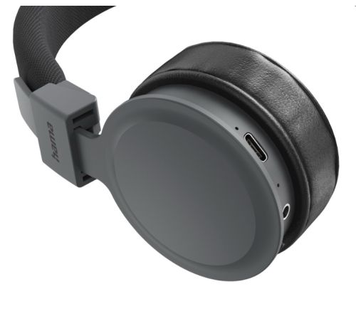 Hama (Freedom Lit III) Bluetooth Headset w/ Mic, 3.5mm Jack/USB-C, Foldable, Up to 15hrs Battery, Black