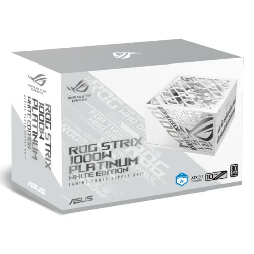 Asus ROG Strix 1000W Platinum White Edition PSU, Fully Modular, 80+ Platinum, ATX 3.1, PCIe 5.0, GaN MOSFET, Intelligent Voltage Stabilizer