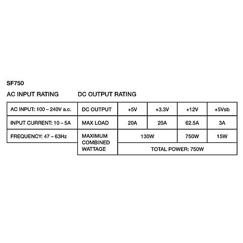 Corsair 750W SF Series SF750 SFX PSU, Fully Modular, 80+ Platinum, Fluid Dynamic Fan, ATX 3.1, PCIe 5.1, SFX-to-ATX Bracket *OPEN BOX*