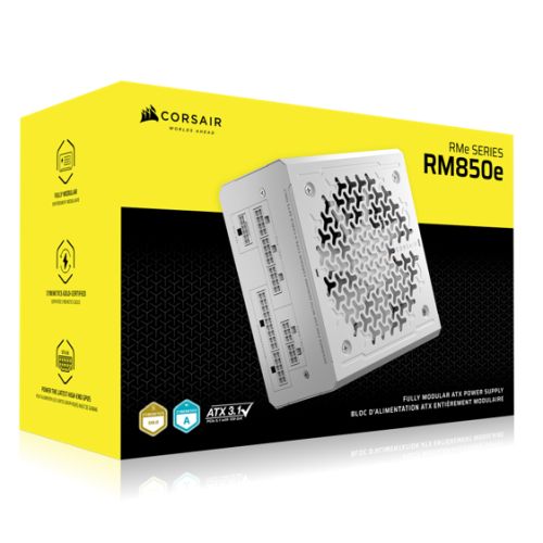 Corsair 850W RMe Series RM850e PSU, Fully Modular, Low-Noise, Cybenetics Gold, Zero RPM Mode, ATX 3.1, PCIe 5.1, White