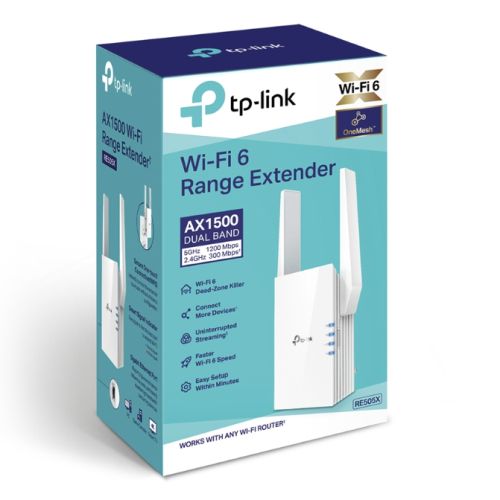 TP-LINK (RE505X) AX1500 (300+1200) Dual Band Wall-Plug Wi-Fi 6 Range Extender, 1 x GB LAN, AP Mode