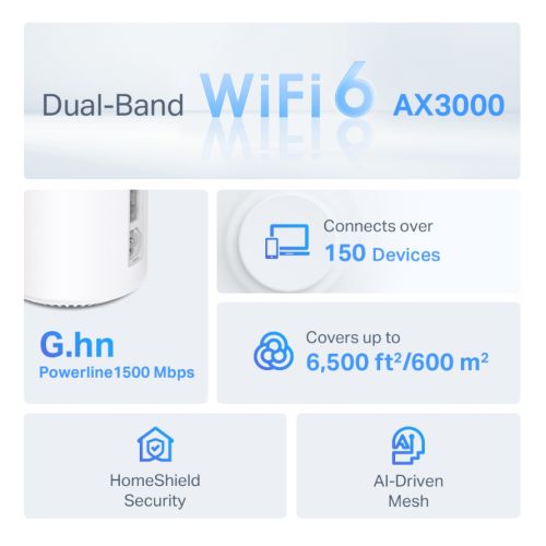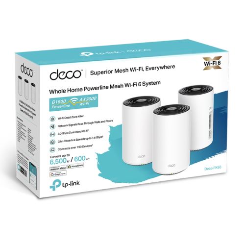 TP-LINK DECO PX50 + G1500 Dual Band Whole Home Powerline Mesh WiFi 6 Wireless System, 3 Pack, 3x LAN, AX3000, 1.5Gbps Powerline
