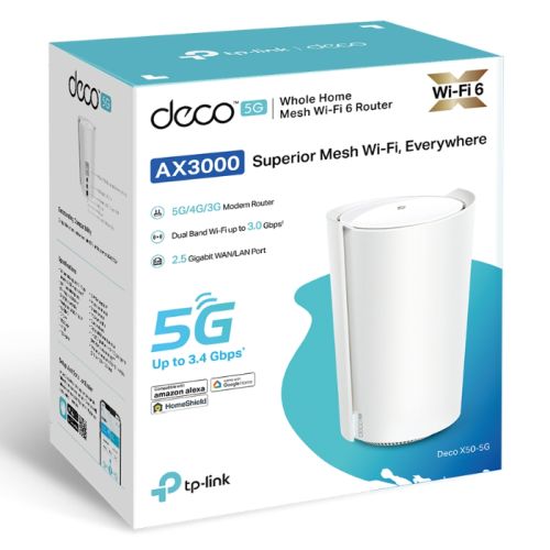 TP-LINK (DECO X50-5G) 5G AX3000 Whole Home Mesh WiFi 6 Gateway System, Single Unit, Dual Band, 2.5G LAN, 2x GB LAN