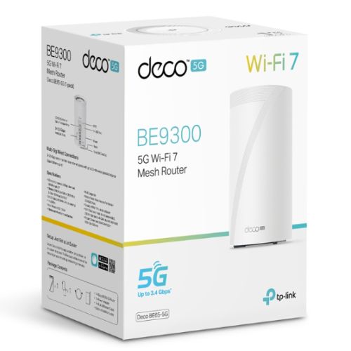 TP-LINK (DECO BE65-5G) 5G BE9300 Tri-Band Whole Home Mesh Wi-Fi 7 System, 5G Broadband, 3x 2.5G Ports, MLO, Wireless/Wired Combined Backhaul