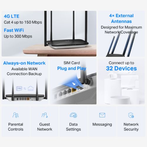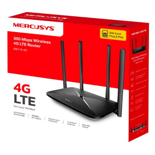 Mercusys (MB115-4G) 300Mbps Wireless N 4G LTE Router, Connect up to 32 Devices, Wi-Fi Router Mode
