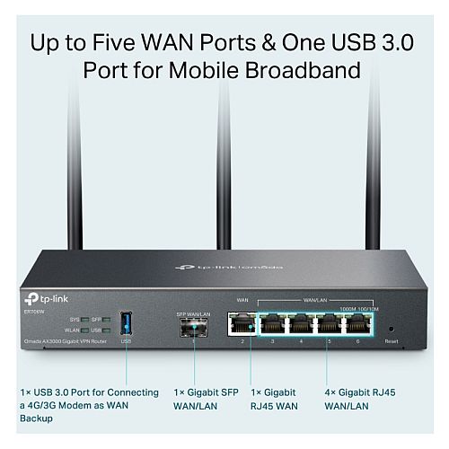 TP-LINK (ER706W) Omada AX3000 Gigabit VPN Wi-Fi Router, Dual Band, 6x GB Ports, USB 3.0, Mesh Technology, Abundant Security Features
