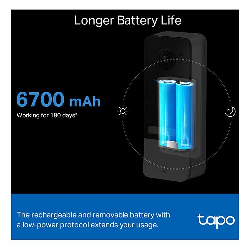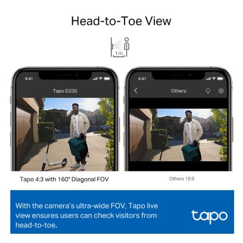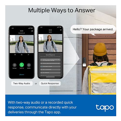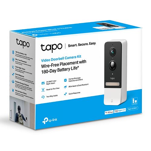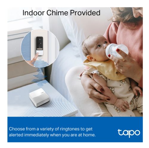 TP-LINK (TAPO D230S1) Smart Battery 2K 5MP Video Doorbell Kit w/ Hub, Night Vision, Ultra-Wide FOV, AI Detection & Notification, Anti-theft
