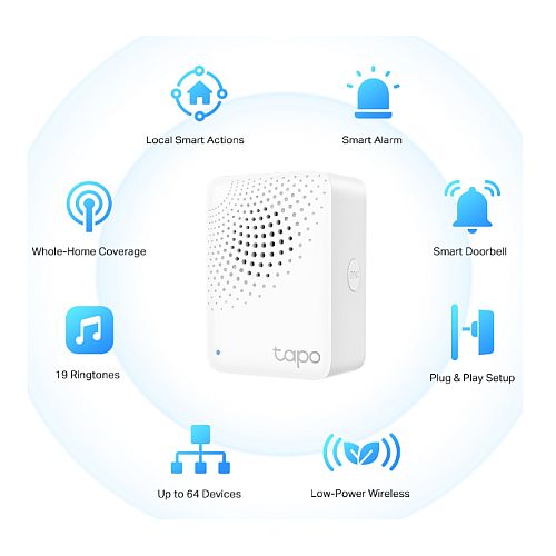TP-LINK (TAPO H100) Smart IoT Hub w/ Chime, Connect up to 64 Devices, Low-Power, Smart Alarm, Smart Doorbell