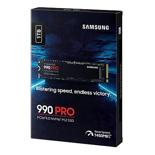 Samsung 1TB 990 PRO M.2 NVMe Gen4 SSD, M.2 2280, PCIe 4.0, V-NAND, R/W 7450/6900 MB/s, 1200K/1550K IOPS