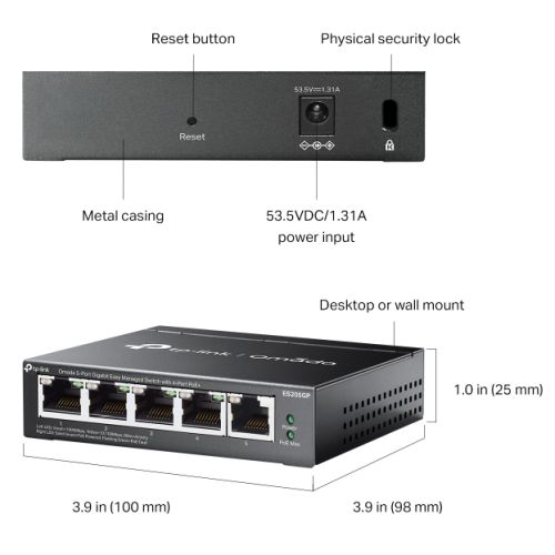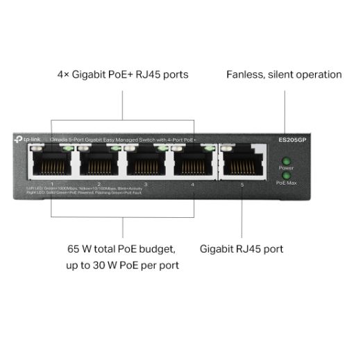 TP-LINK (ES205GP) Omada 5-Port Gigabit Easy Managed Switch with 4-Port PoE+, 5x GB Ports, Metal Casing