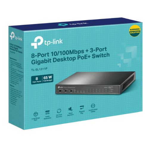 TP-LINK (TL-SL1311P) 8-Port 10/100Mbps + 3-Port Gigabit Desktop Switch with 8-Port PoE+, GB SFP Port