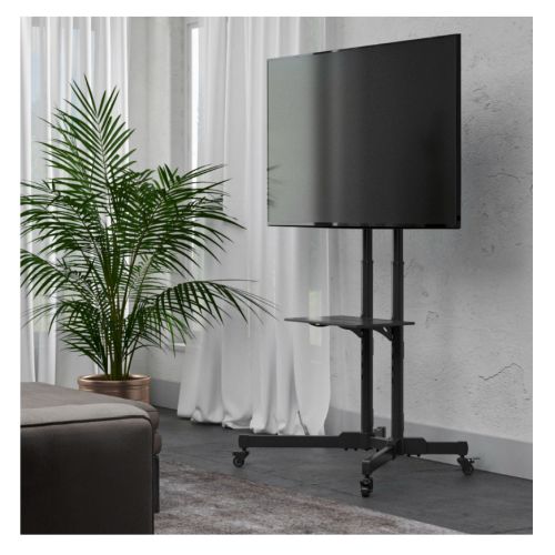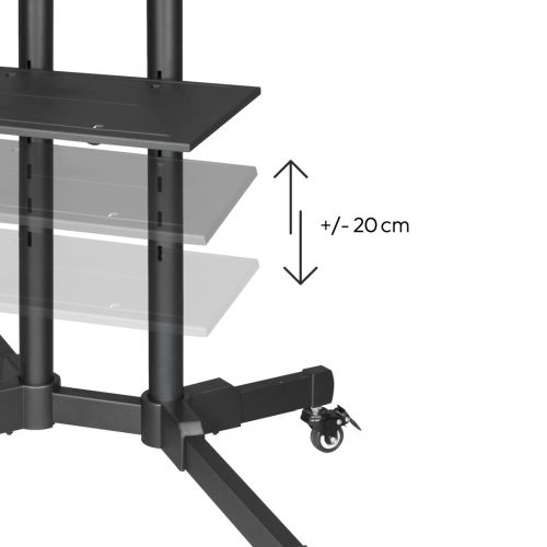 Hama Trolley Mobile TV Stand, Up to 75" TVs, 40kg Max, 4 Castors w/ Breaks, Height-Adjustable, Cable Manager, VESA up to 600 x 400